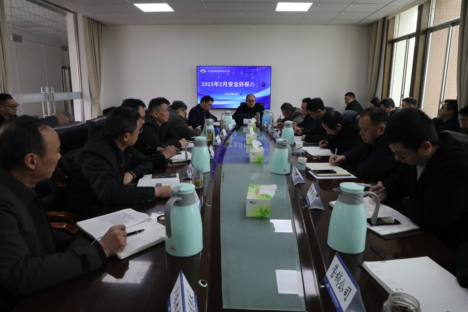 各单位汇报了二月份安全环保工作情况,两会期间安全生产工作安排及下一步工作打算。安全环保部部长丰雄龙对公司二月份安全环保工作情况做了小结,指出存在的问题,提出具体措施和办法,安排布置近期工作。