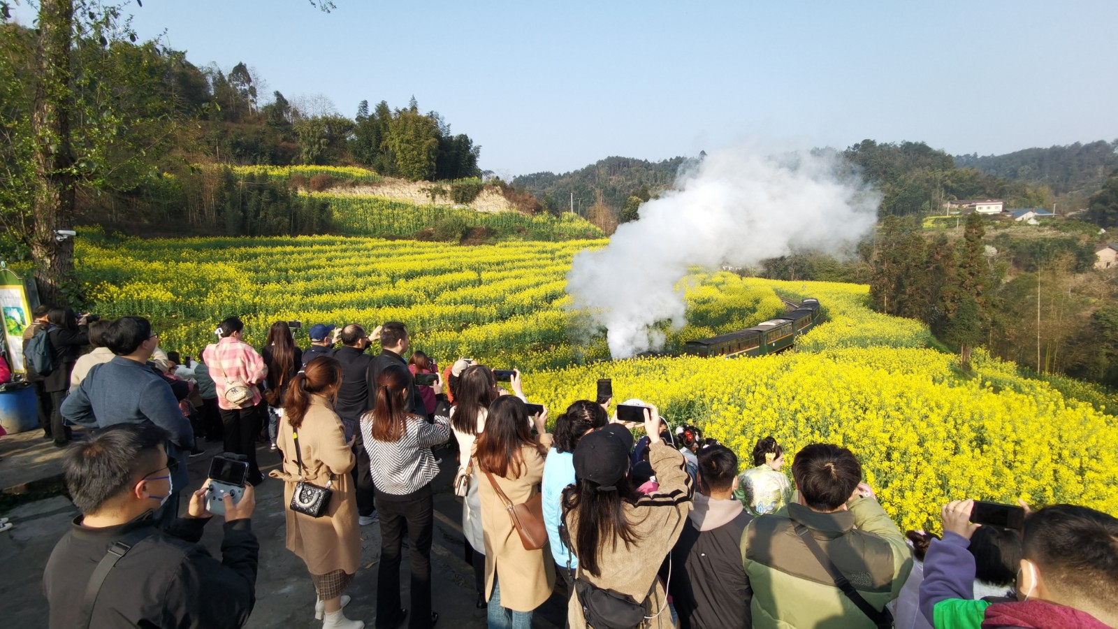 油菜花开,美丽如画,开往春天的小火车正在画卷中穿行,铁路旁、山头上游人们徜徉在春天里。乐竞体育,乐竞(中国)川投峨旅公司2023年“花季之旅”开启以来,逐步进入高潮,游客数量持续增加,周末更是一票难求,近万人的游客一扫疫情以来的阴霾,迎来旅游业复苏的春天。