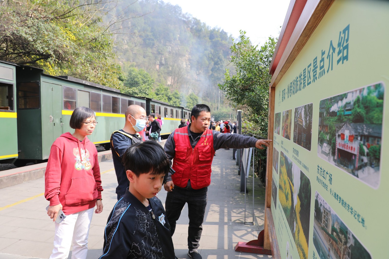 阳春三月,菜花金黄,一列冒着蒸汽、吐着白烟的小火车带着“呜呜”的汽笛声从花丛中穿过,于是山被唤醒了,花儿们竞相开放争奇斗艳,水被唤绿了,映照着蓝天上的朵朵白云。这列“比熊猫还要珍贵”的蒸汽小火车吸引着四面八方的游客,乐山周边县市的携妻带子之旅、川内各地的呼朋唤友之行、国内外旅行社嘉阳小火车赏春之程……游客们纷至沓来。游客接待中心,跃进站、芭蕉沟火车站、黄村井观光矿井,芭蕉沟大街小巷,到处挤满了前来观光的人群。“一票难求、一餐难求”,嘉阳景区旅游火得发烫。花季之旅自启动到3月12日,接待游客超过5万人次。