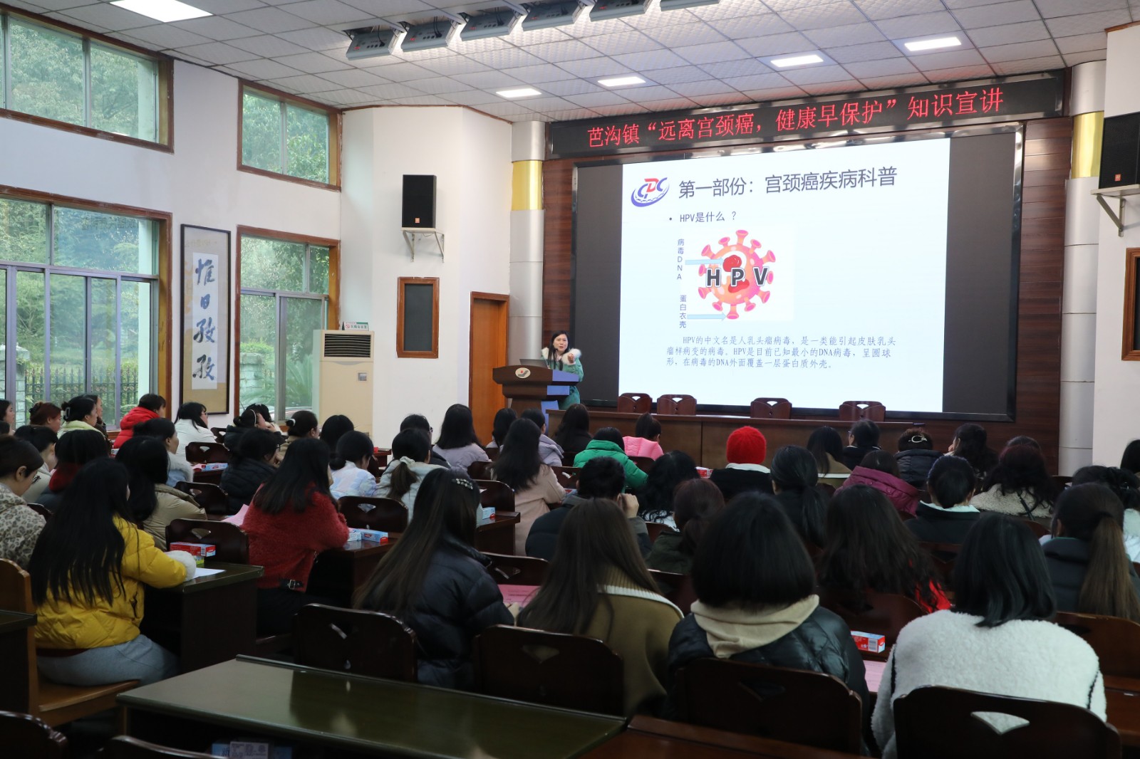 关爱女性健康,特别的爱给特别的你。3月4日上午,犍为县疾控中心免规科科长黎燕为女职工们开展宫颈癌疾病健康知识讲座,她详细讲解了宫颈癌疾病的危害以及主要症状、特点,并讲述了自我检查、自我预防的基本方法等相关知识。提醒广大女职工要加强自我保护和健康意识,做到早预防、早发现、早治疗。芭沟镇卫生院相关医护人员介绍了如何接种HPV疫苗等相关问题。通过此次讲座,让女职工们进一步了解了基本的健康知识,激发了大家对自身健康的关注度,进一步增强了自我保护意识。