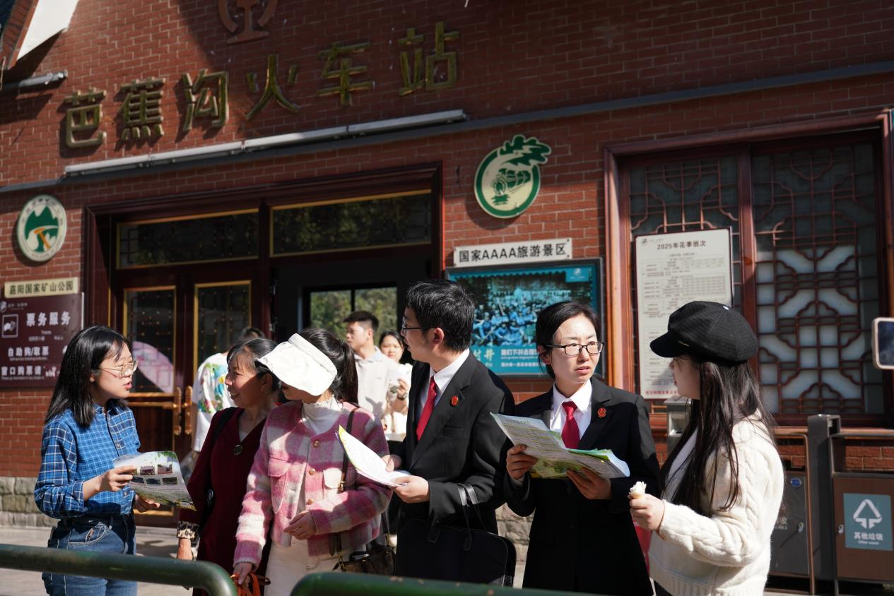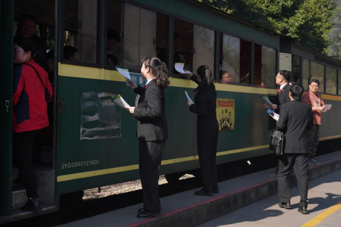 活动当天,法官们登上嘉阳小火车,将车厢变为“移动普法课堂”,结合《环境保护法》《民法典》中生态环境侵权责任条款,随着火车徐徐前进,向游客们讲解环境污染防治、生态破坏法律责任等法律知识,并发放图文并茂的普法宣传册。