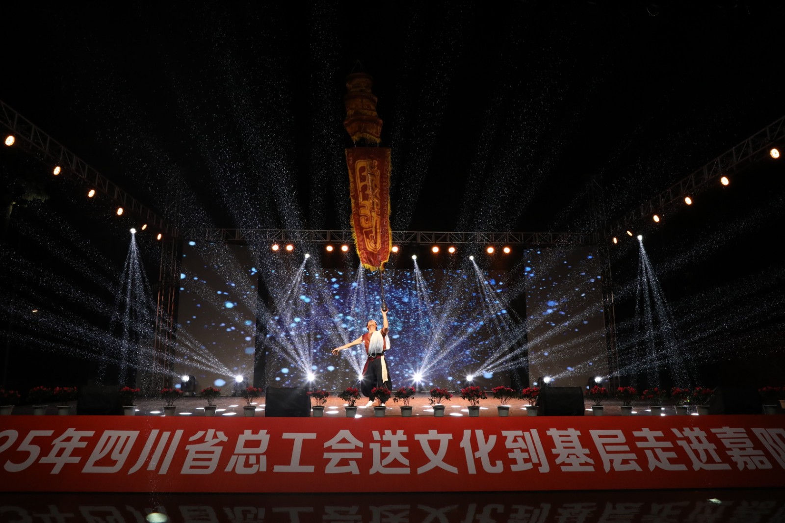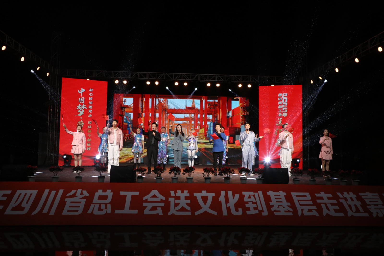 10月22日晚,由四川省总工会主办、四川能源发展集团承办,乐竞体育,乐竞(中国)协办的“中国梦·劳动美——凝心铸魂跟党走 团结奋斗新征程”2025年四川省总工会送文化到基层活动走进嘉阳集团,在风雨交织中为广大职工及家属带来了一场精彩纷呈的晚会。