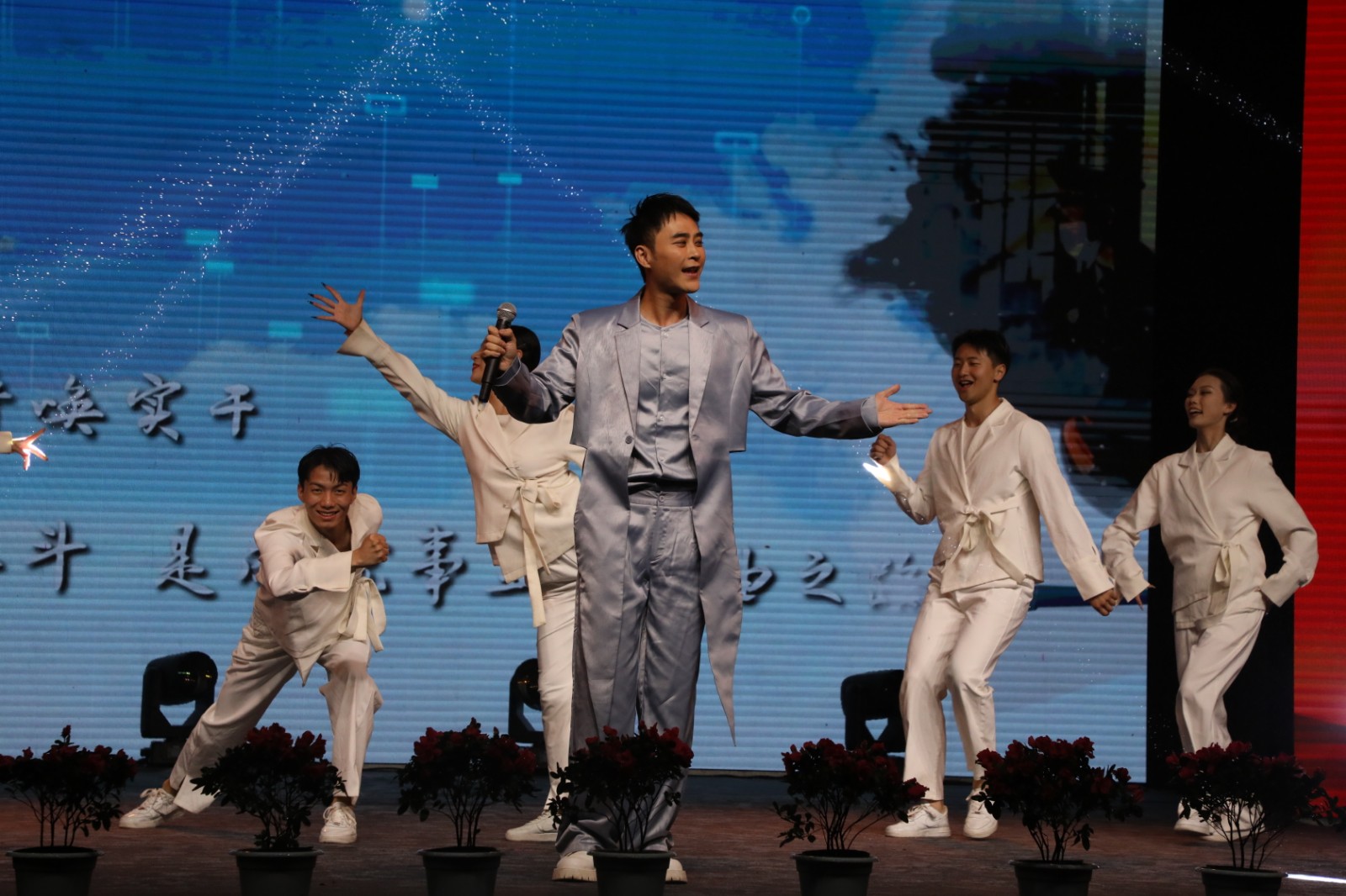 劳模风采展示环节,两位扎根矿山的劳模工匠杨卫星、但通分享了各自在岗位中磨砺成长的故事,“不要等、不要靠;解决问题是成功,没有解决问题也是成长!”“成功没有捷径,有的就是热爱、责任和坚持”……朴实的语言诠释了“中国梦·劳动美”。晚会中主持人不时与台下观众互动,知识问答展现了职工对企业文化的自信,歌曲接龙唱出了新时代矿山人的激情与豪迈,赢得阵阵喝彩。活动现场笑声、掌声、欢呼声此起彼伏,演出在大合唱《我和我的祖国》中落下帷幕。