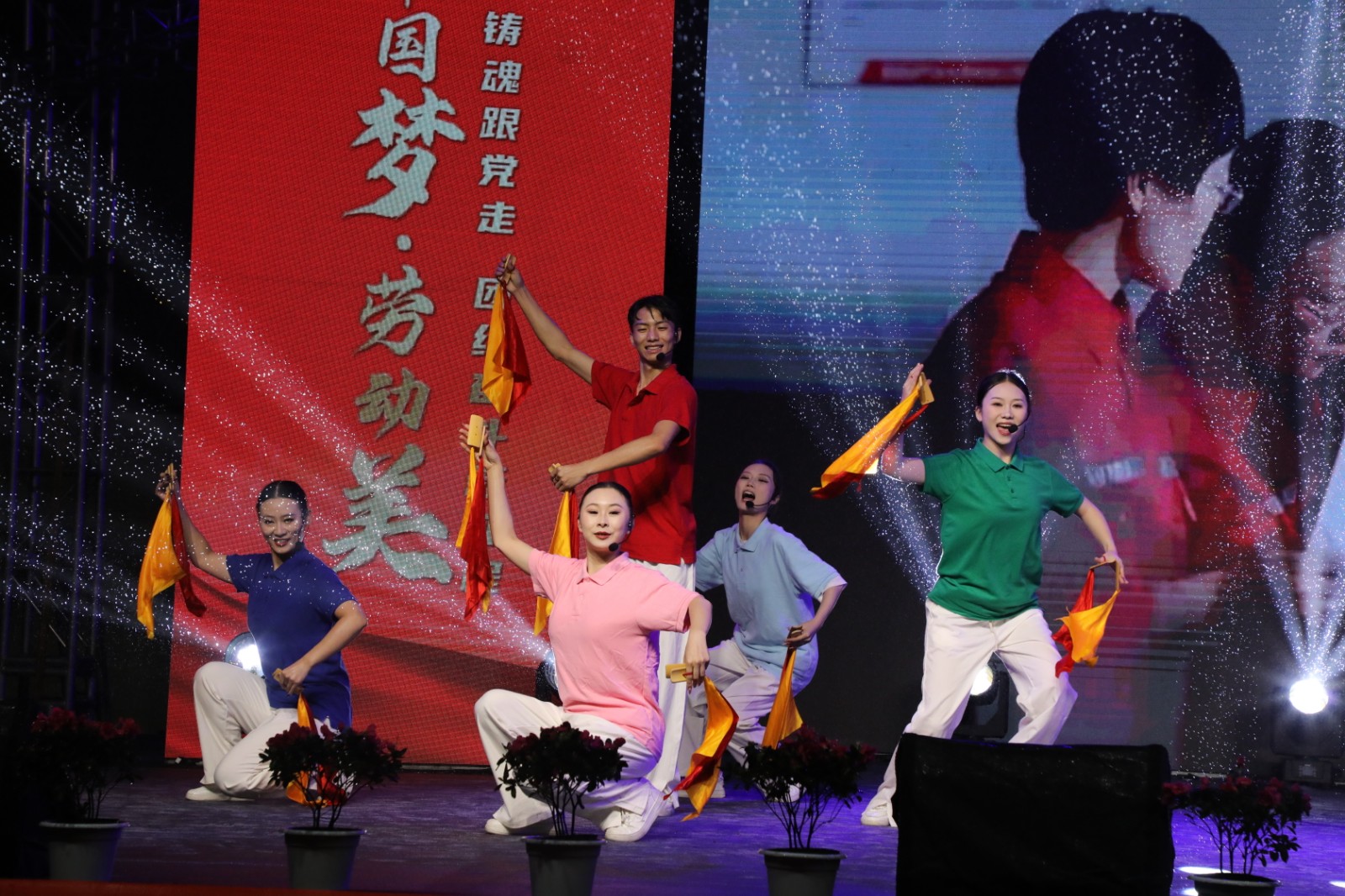 晚会在舞蹈《乌金律动·大地回响》中拉开序幕,舞者身姿矫健,动作刚劲有力,传递出煤矿工人的炽热情怀,生动诠释了“燃烧自己,照亮世界;奉献自己,服务社会”的嘉阳煤矿燃烧文化;诗朗诵《追寻》、劳模风采展示、歌曲《一路向前》、杂技《扬帆前行》、音乐快板《四川工人有力量》、非遗集萃《巴蜀神韵》、魔术《最炫中国风》等形式多样、精彩纷呈的节目轮番上演,现场观众欢呼声、喝彩声不断,充分展示了新时代劳动者阳光向上、积极进取的精神风貌,唱响了劳动最光荣的主旋律。
