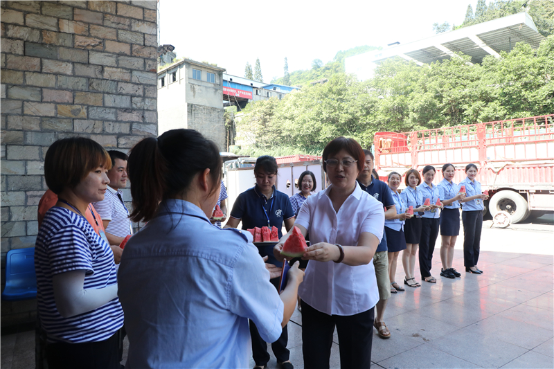 随后,刘主席一行来到川投峨旅公司跃进站,将解暑饮品送到车站职工手中,并询问职工防暑降温情况和暑期游客情况,嘱咐他们既要照顾好游客让游客满意,又要照顾好自己,以良好的身体状态和昂扬的精神投入到工作中,再接再厉,为景区发展再创佳绩。
