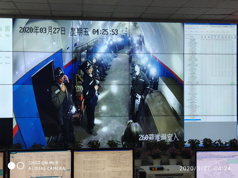 地面,矿长丰雄龙等应急救援指挥部成员闻讯赶到指挥中心临阵指挥,命令立即启动应急救援预案和现场处置方案。4时17分,按照命令,调度中心及时通过应急广播系统向井下所有人员发出突发“事故”信息,所有人员立即撤出地面。同时,借助中心网络信息平台远程控制系统和监控系统启动中央水泵房全部水泵,迅速查清矿井人员分布情况,通知矿灯房清理出入井人数,要求各队安排专人在井口警戒,掌握通风设施、瓦斯、温度、一氧化碳等参数,切断与抢险无关的电源保证排水供电,并传达各项指令、收集提供相关情况和作好详尽记录。
