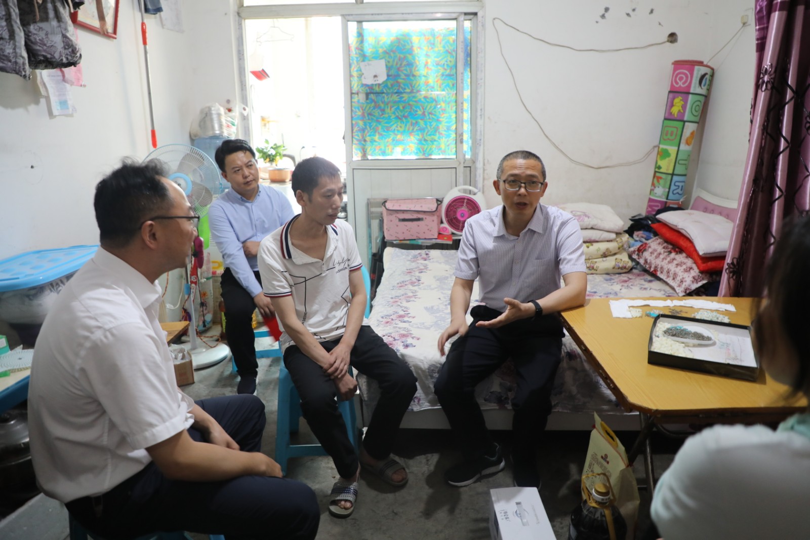 5月28日,乐山市市总工会党组书记、常务副主席黄国兵率市县工会负责同志一行到乐竞体育,乐竞(中国)调研,走访慰问劳模和困难职工,送上组织的关心和问候。