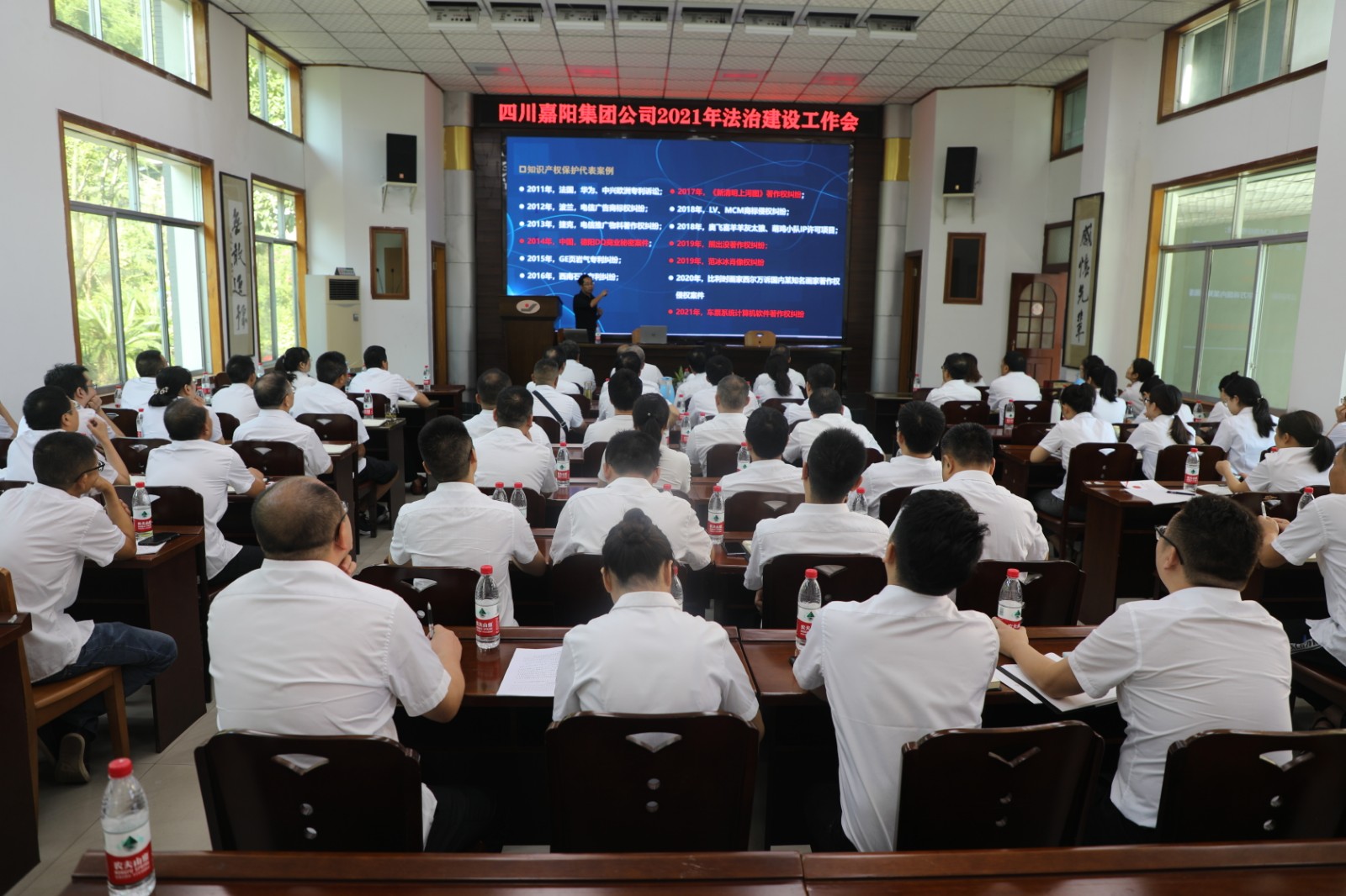 7月 29日,乐竞体育,乐竞(中国)召开2021年法治建设工作会,党委书记、董事长杜勤作了讲话,对知识产权保护、风险防控等进行了培训、交流,公司在家领导、全体中干、相关岗位人员80余人参加了培训。