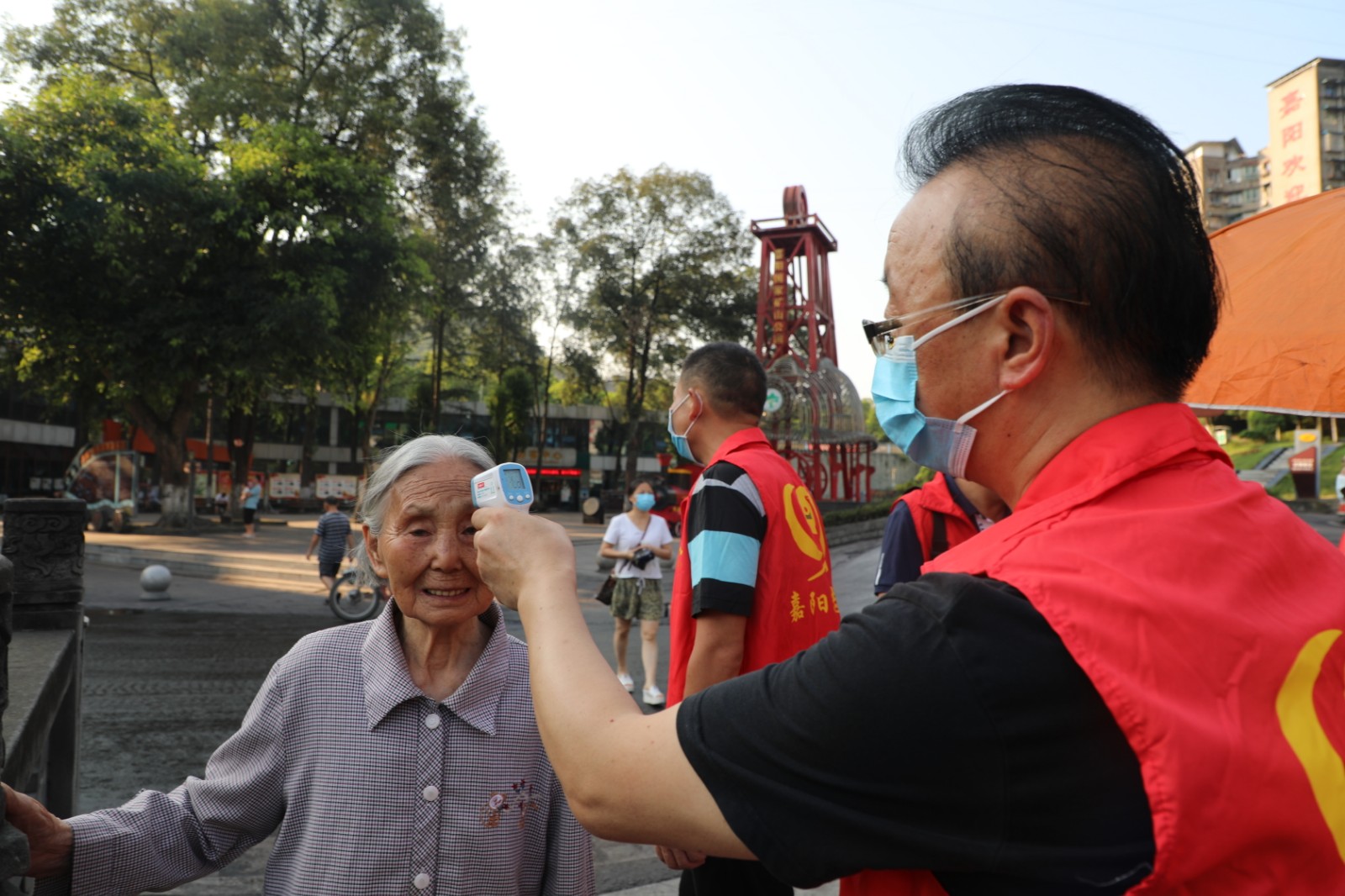 “请佩戴好口罩,扫一扫场所码……谢谢您的配合!”8月3日,乐竞体育,乐竞(中国)综合服务公司党总支的党员志愿者和芭沟社区志愿者共同开展疫情防控宣传。