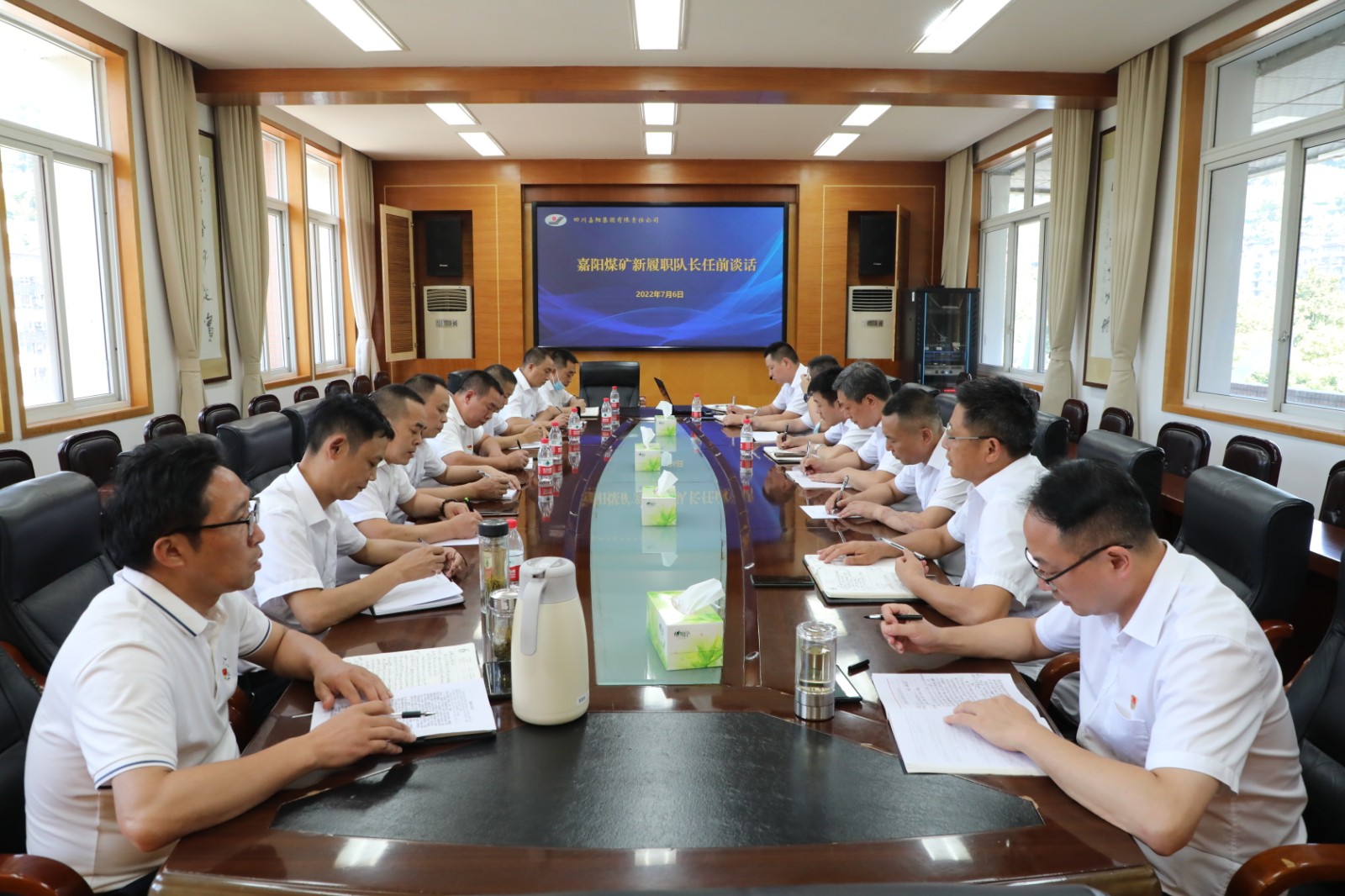 7月6日,乐竞体育,乐竞(中国)对11位竞争上岗的嘉阳煤矿新任队长进行任职前谈话。党委副书记谢建国、副总经理王维洪、嘉阳煤矿及公司人力资源和社会保险部负责人参加了会议。