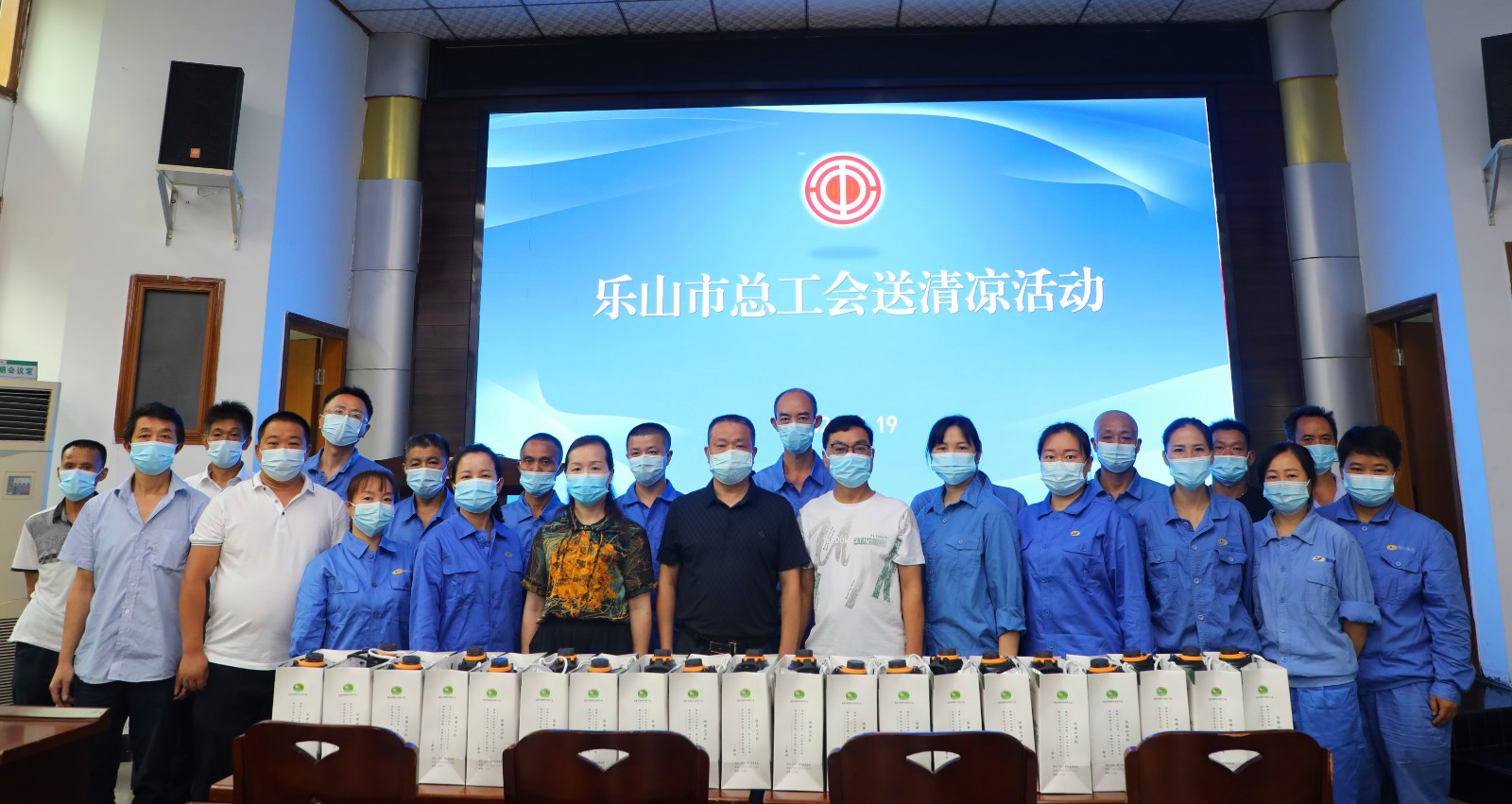 7月19日,乐山市总工会二级调研员邓安林一行到乐竞体育,乐竞(中国)开展送清凉慰问活动,为高温天气坚守在一线的职工代表们送去慰问品,将上级组织的关怀送到职工的心坎上。