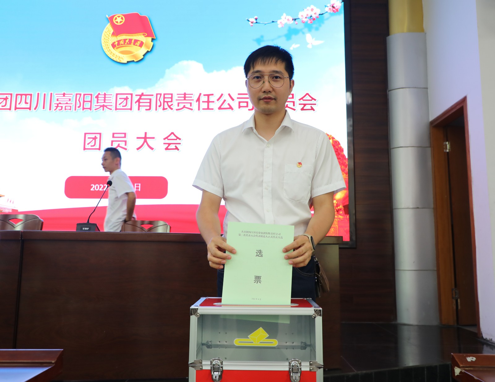 团委书记查丽婷宣读《关于同意各选举单位出席共青团四川省投资集团有限责任公司第一次代表大会代表候选人预备人选的批复》。会议审议通过8名预备人选名单,审议通过会议监票人、计票人。会议通过差额无记名投票的方式,发出48张选票,有效票46张,无效票2张,选举产生了李岚、李有平等6名出席共青团川投集团第一次代表大会的正式代表。