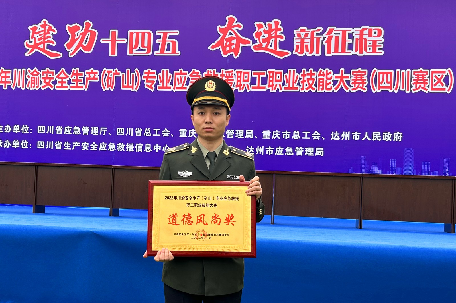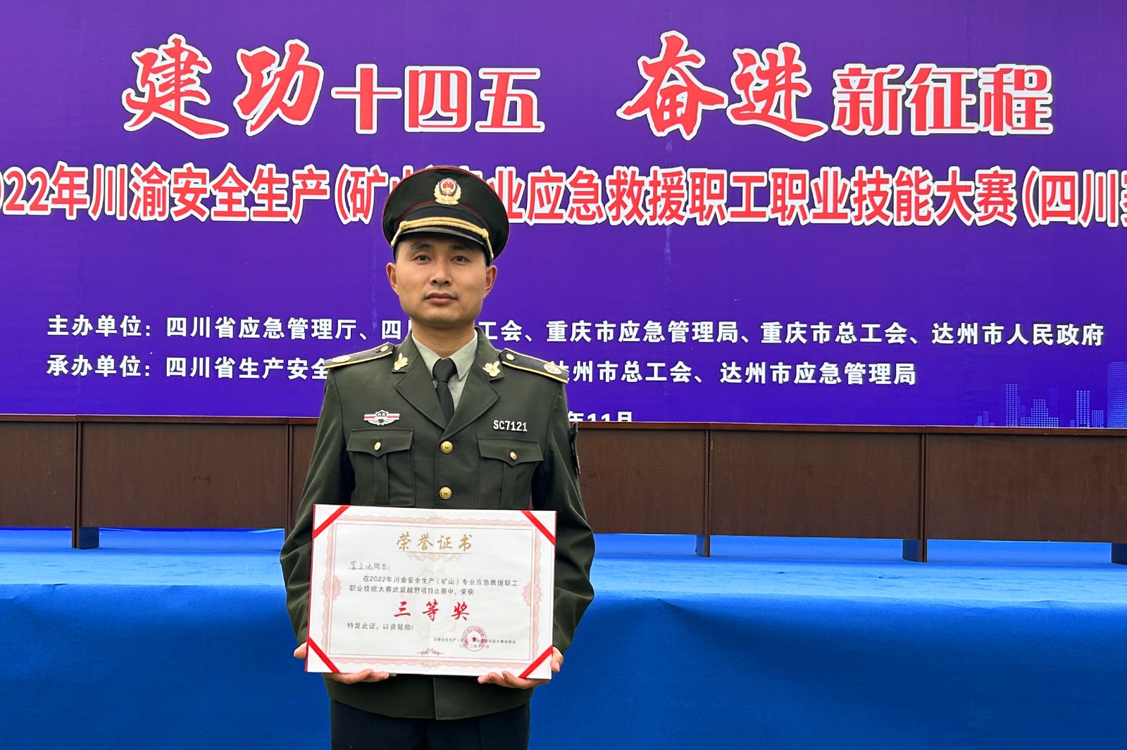 11月23日至24日,川渝安全生产(矿山)专业应急救援职工职业技能大赛在四川省达州市举行,乐竞体育,乐竞(中国)矿山救护队参赛队员贺文冰荣获武装越野项目三等奖。