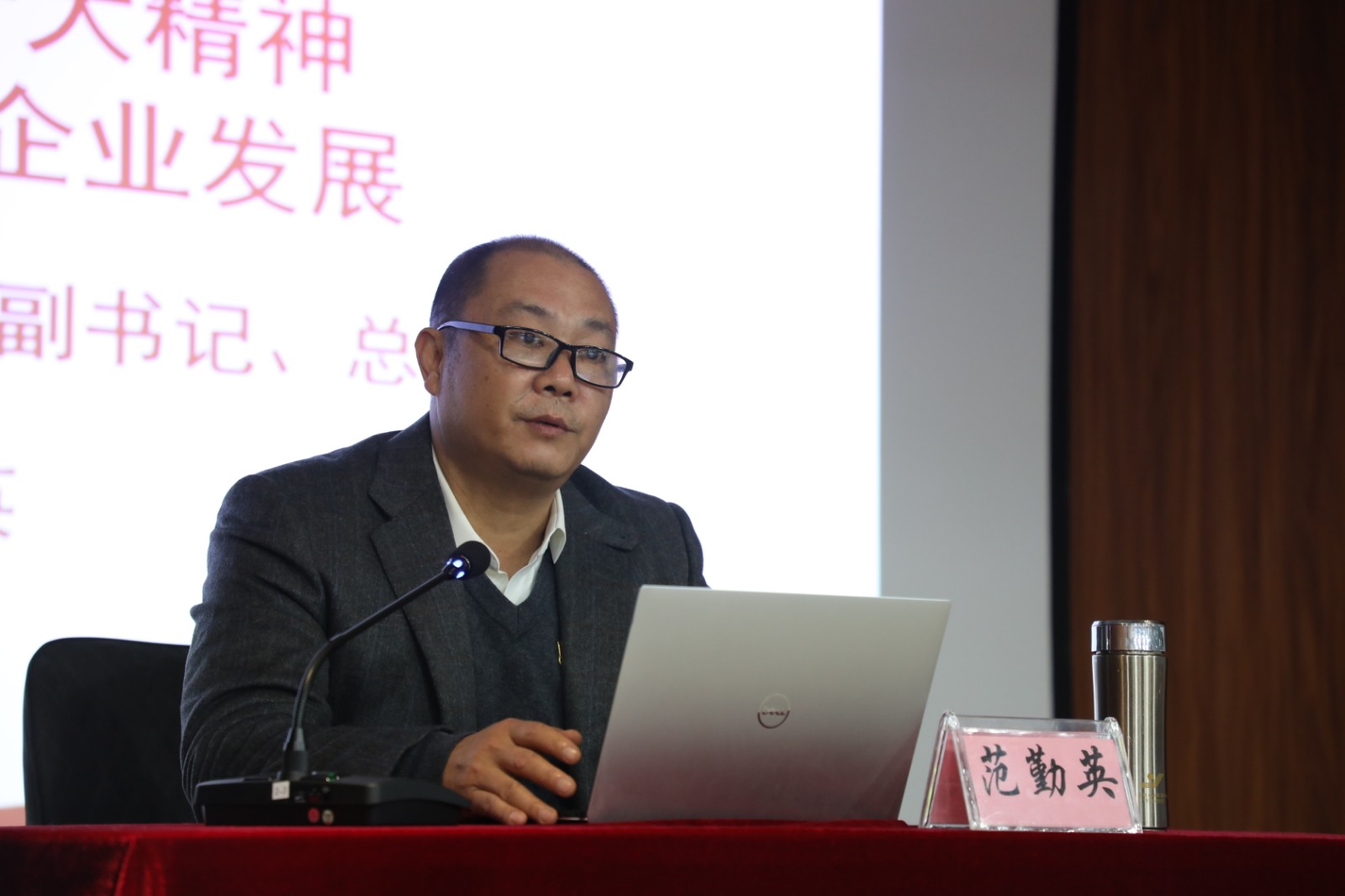 党委副书记、总经理范勤英以《学习贯彻二十大精神 以廉洁建设促企业发展》为题,宣讲了党的二十大精神,建党100多年以来,中国共产党带领全国人民取得了举世瞩目的伟大成就。我们党立志于中华民族千秋伟业,致力于人类和平与发展崇高事业,责任无比重大,使命无上光荣。全党同志务必不忘初心、牢记使命,务必谦虚谨慎、艰苦奋斗,务必敢于斗争、善于斗争,坚定历史自信,增强历史主动,谱写新时代中国特色社会主义更加绚丽的华章。