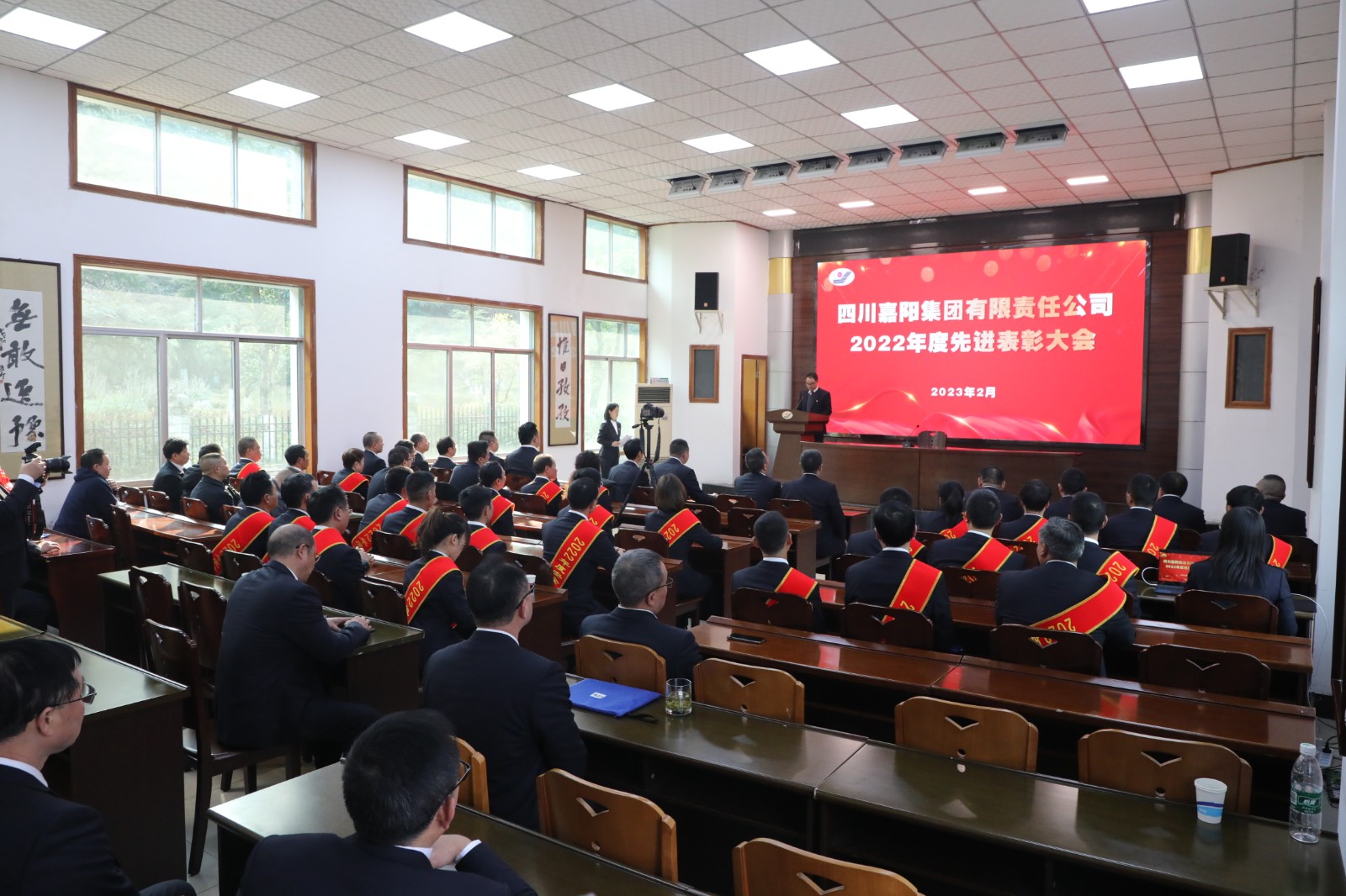 2023年2月1日下午,乐竞体育,乐竞(中国)办公楼底楼会议室座无虚席,欢声雷动,受表彰的先进代表披红戴花,喜气洋洋。公司2022年度先进表彰大会在此隆重召开。