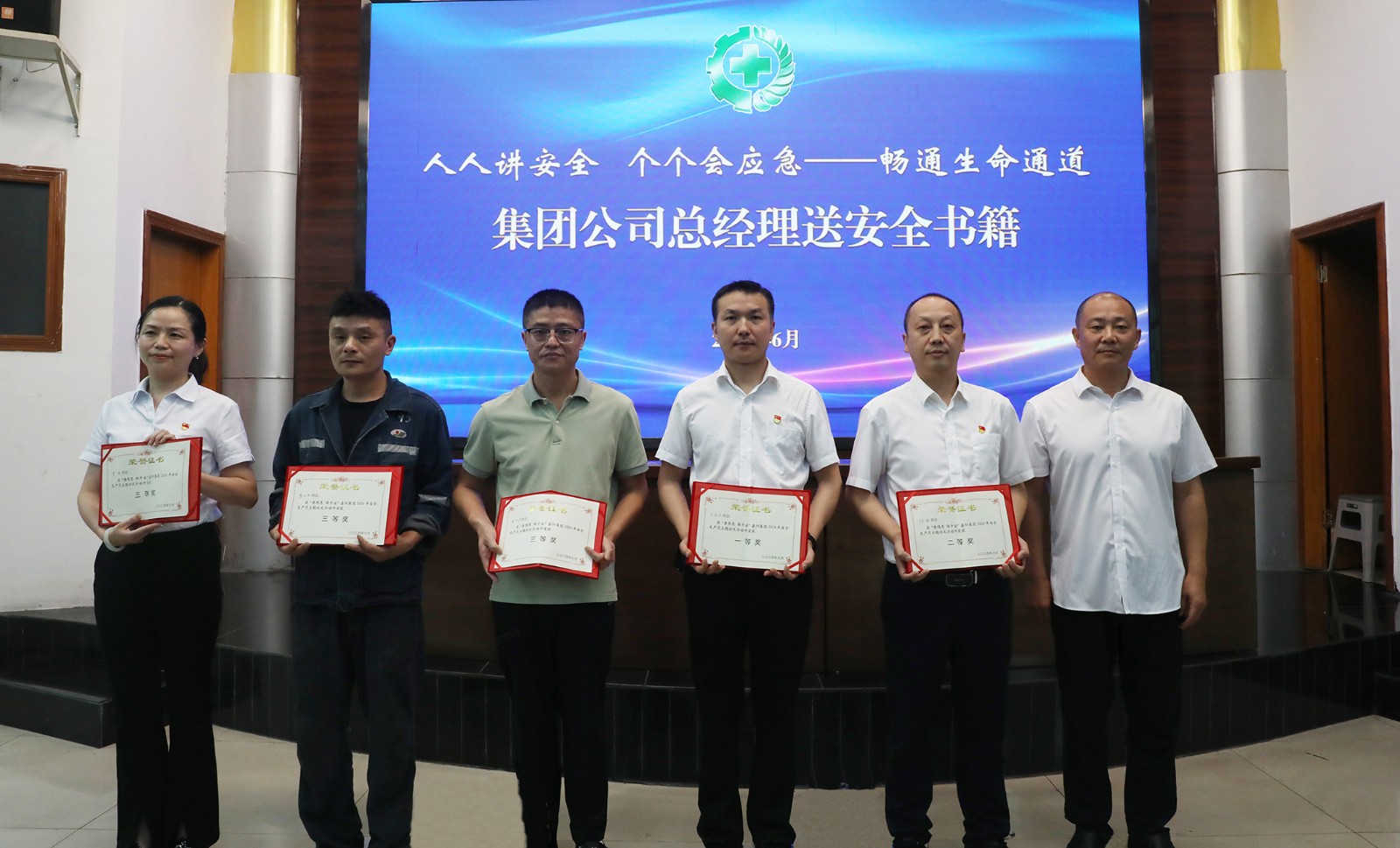 5月中旬至6月10日,公司开展了“查隐患 保平安”主题征文活动,万利东获一等奖,王琼瑶、徐伟获二等奖,何丕洪、廖亚丽、李玫获三等奖,党委书记、董事长杜勤和范勤英分别为演讲比赛和征文比赛获奖者颁奖,范勤英现场为参加活动的人员发放了安全书籍。
