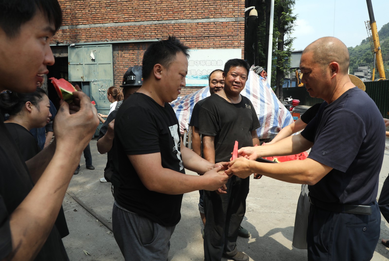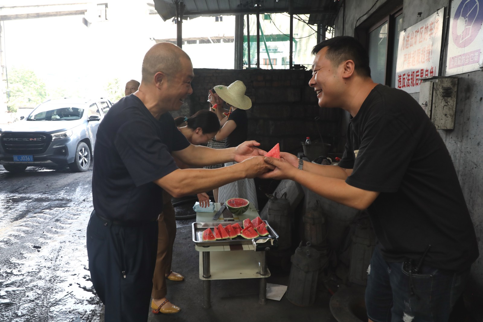 进入8月,高温天气持续作威,高温作业的职工异常辛苦。范勤英带领机关第三党支部的党员们来到高温一线,看望煤矿机电队机组班、炭坝高温作业的职工。“师傅们歇口气,吃块西瓜凉快下,吃碗冰粉解下暑”,范勤英一边招呼正在辛勤工作的职工们,一边为他们送上清甜可口的西瓜、凉爽解暑的冰粉,关切地询问他们在高温时段的作业情况,叮嘱他们一定要合理安排作息时间,有效预防中暑,切实保障自身安全。同时要求煤矿党政工团切实采取职工防暑降温措施,最大限度减少高温天气给职工身心健康带来的影响,确保他们平安度夏。